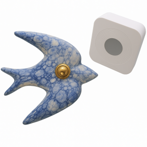 Pensée pour l'écologie, l'Oiseau Bleu fonctionne grâce à l'énergie cinétique générée par la simple pression du doigt. Son design évocateur d'une hirondelle en vol, parée d'un motif bleu céruléen et d'un bouton doré ou argenté brillant, en fait une pièce maîtresse distinctive. Accueillez vos visiteurs avec élégance et une conscience environnementale exemplaire !